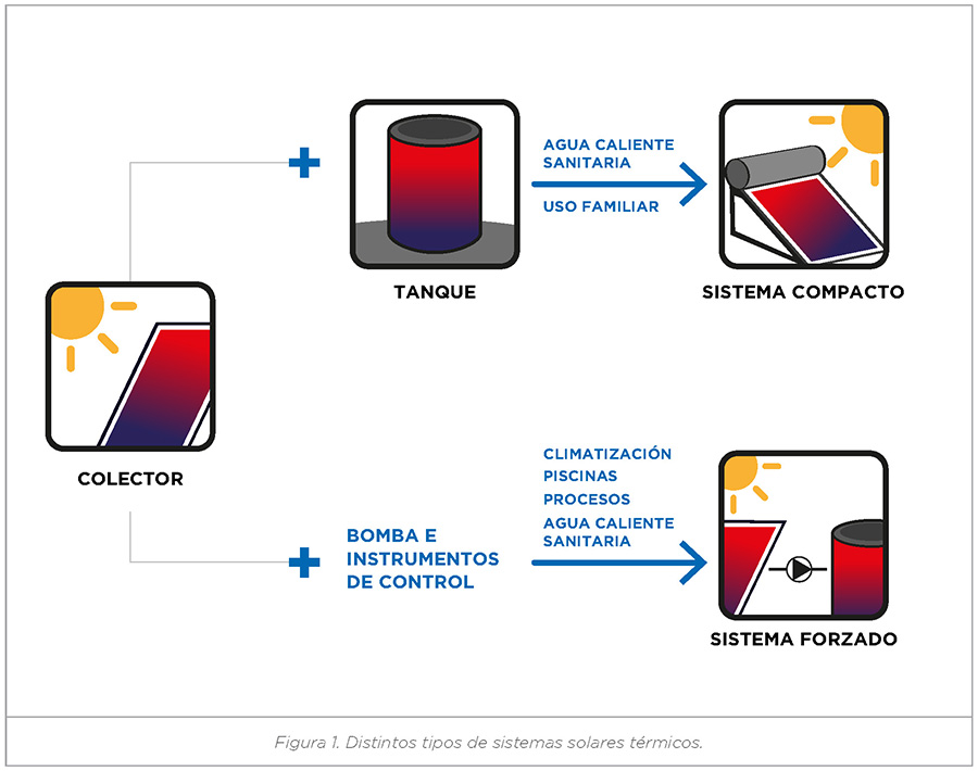 Cualquier sistema solar térmico consta de dos componentes esenciales: el colector y el tanque acumulador. El colector se encarga de transformar la energía solar en calor y calentar un fluido