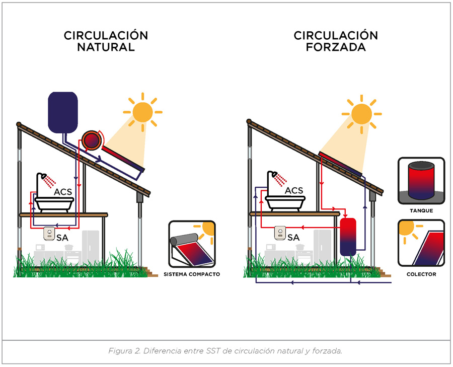 Los SST que funcionan por circulación natural o termosifónicos no utilizan bombas o controladores